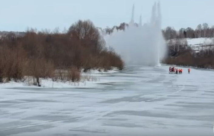 Под Новосибирском взорвали лёд на Ине во избежание заторов