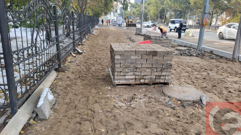 В Новосибирске на Монументе Славы накануне зимы приступили к укладке плитки
