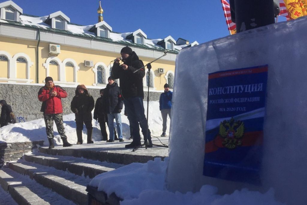 Один из организаторов митинга Юрий Зимин принёс собой Конституцию России в глыбе льда. Он заявил, что согласен отказаться от поправок социального характера, т.к. их цель — отвлечение внимания от глубинных и неизбежных процессов переписывания законов под интересы элиты.