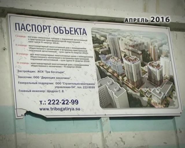 Председателем правления кооператива был Виктор Лучкин, он же был и директором ООО «Олимпийский». Этой компании был представлен в аренду земельный участок под возведение жилого комплекса. Но чтобы получить разрешение на строительство, нужно было расселить несколько ветхих домов. Из-за того, что эти обязательства не были выполнены, мэрия Новосибирска расторгла договор аренды, а ЖК «Три богатыря» превратился в долгострой.