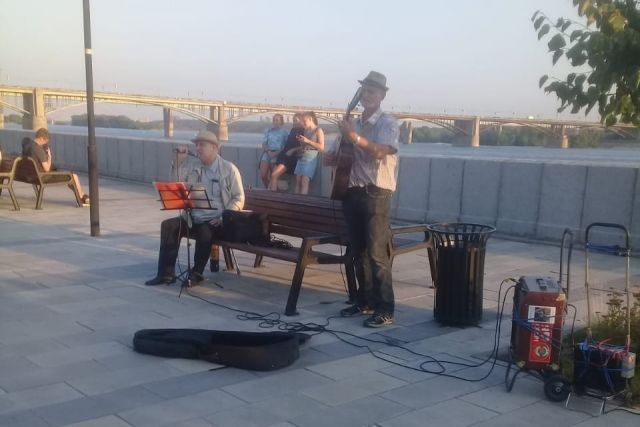 Еще в прошлом году участники ансамбля «Серебряный век» играли в одном из так называемых карманов на набережной. Всего их три на протяжении от парка «Городское начало» до коммунального моста. Игорь Штакельберг, который уже давно поет с «Серебряным веком» явно не доволен произошедшими изменениями.