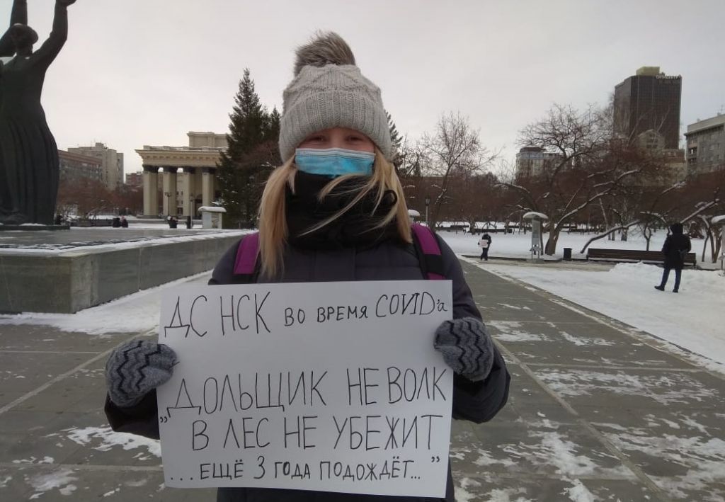 Протестные акции обманутых дольщиков в Новосибирске не прекращаются всю осень 2020. Ранее, 7 ноября, обманутые дольщики нескольких объектов провели митинг у театра «Глобус». Обманутые дольщики долгостроев ЖК «Тульский», микрорайона «Радужный» в Верх-Туле и долгостроя на улице Красина выходили на совместную протестную акцию 24 октября. Как проходила та протестная акция на Красном проспекте «Прецедент» рассказывал в материале: «Лига обманутых дольщиков: «Мы намерены бушевать».