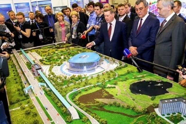 Одновременно с возведением ледового дворца идет строительство подъездных дорог, станции метро «Спортивная», пешеходного перехода через дамбу Октябрьского моста, благоустраивается прилегающая территория.