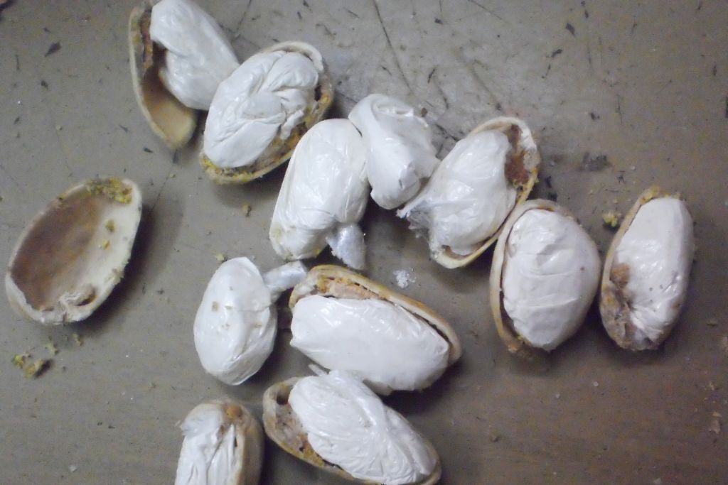 Сотрудники ИК-13 ГУФСИН России по Новосибирской области столкнулись с редким способом передачи заключённым запрещённых предметов. Они досматривали посылку на имя одно из осуждённых. Их внимание привлекли фисташки. Присмотревшись и попробовав расколоть один из орехов, дотошные работники ГУФСИН обнаружили маленький свёрточек с белым порошком внутри.