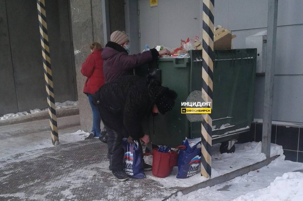 Группа из пятнадцати человек была замечена на улице Челюскинцев накануне Рождества. Мусорные баки находятся прямо в непосредственной близости от магазина «Пятёрочка». Как рассказывают очевидцы, женщины не спеша доставали продукты из баков и раскладывали по пакетам с эмблемой «Единая Россия». Это решил осветить подписчик паблика «Инцидент Новосибирск» Игорь. Он посчитал, что в этом событии скрывается символизм эпохи. В соцсетях тут же последовало обсуждение данного факта.