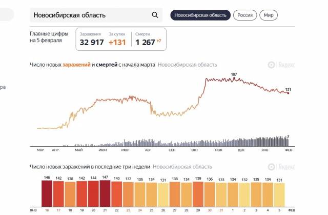 Статистика смертности по данным оперштаба не совпадает со статистикой смертей по данным органов ЗАГС. Например, только в январе 2021 в области умерло на 798 человек больше чем в январе 2020. Наибольший прирост смертности, почти вдвое, произошел в ноябре 2020 – 5150 смертей. Ноябрь 2019 – 2703. В декабре 2020 умерло 4440 человек – на 49% больше, чем 2956 в декабре 2019. Скачок смертности в Новосибирской области заметно совпал по времени с осенней волной пандемии COVID-19.