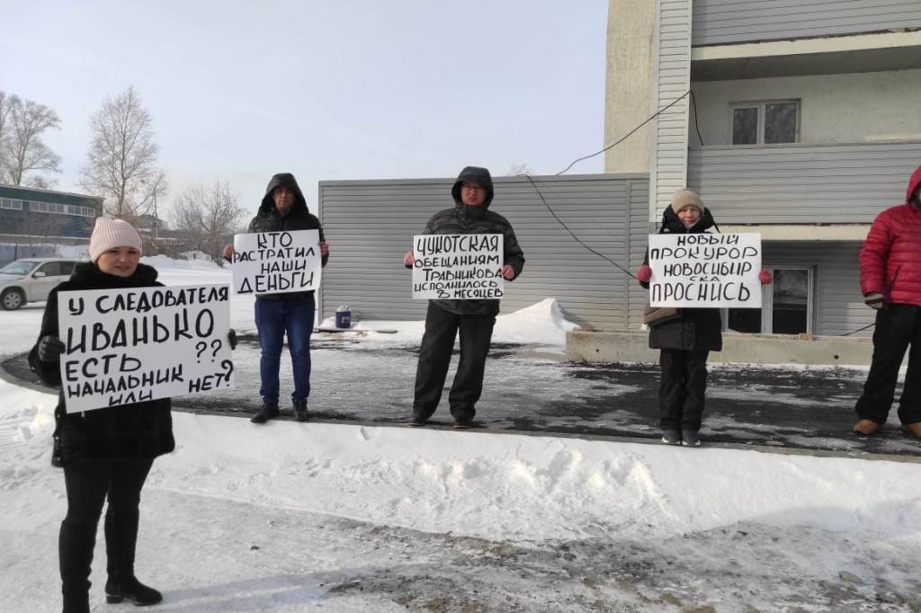 Больше года дольщики с Чукотской пытаются добиться возбуждения уголовного дела. Его судьба может решиться после проведения экспертизы. Чтобы дело опять не откладывалось в долгий ящик, обманутые инвесторы вышли на одиночные пикеты. Плакаты их непраздничного шествия были посвящены новому прокурору Новосибирска Роману Сиваку и руководству следственного управления УМВД России по Новосибирску.
