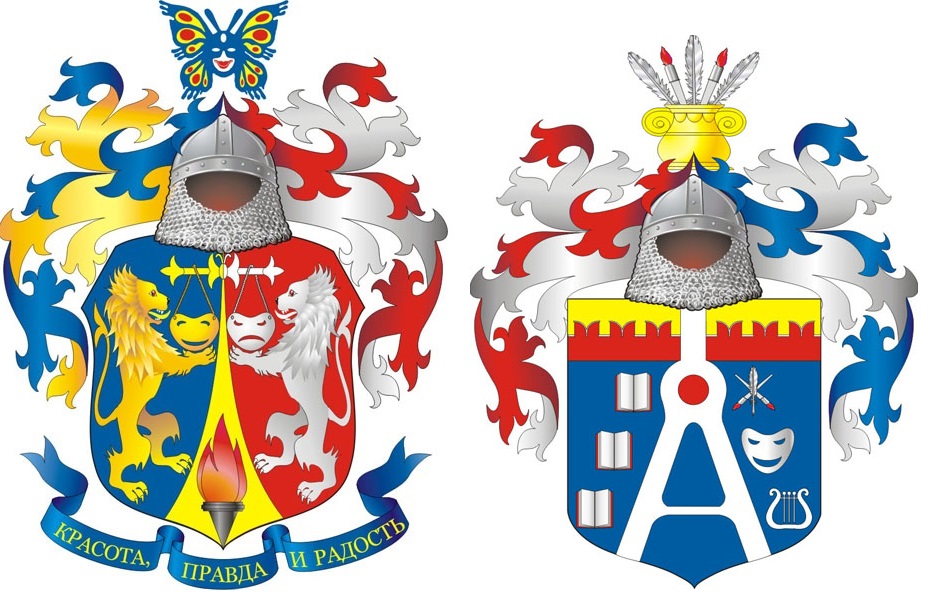 Герб Влаиля Казначеева слева, герб Михаила Лаврентьева (справа)