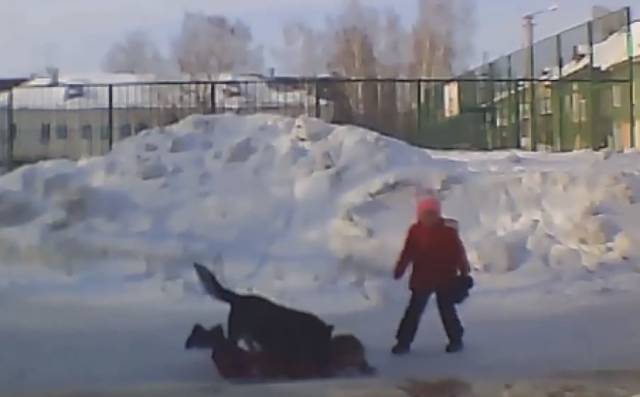 Нападение бездомной овчарки на ребенка на улице Механической в Первомайке попало в объектив видеорегистратора. На кадрах записи видно, как огромный пес таскает малыша по земле, а находящаяся рядом девочка бесстрашно, но безуспешно пытается отогнать собаку.