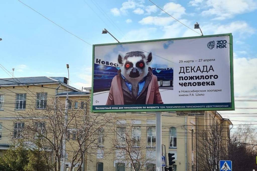 На улицах Новосибирска можно увидеть баннер, который информирует пенсионеров по возрасту о возможности бесплатного посещения зоопарка имени Ростислава Шило с 29 марта по 27 апреля. На переднем плане находится красноглазый лемур, и это образ вызвал бурное обсуждение в социальных сетях. Далеко не все сочли его уместным, однако ряд пользователей не увидел в нем ничего зазорного, посчитав это креативным ходом.