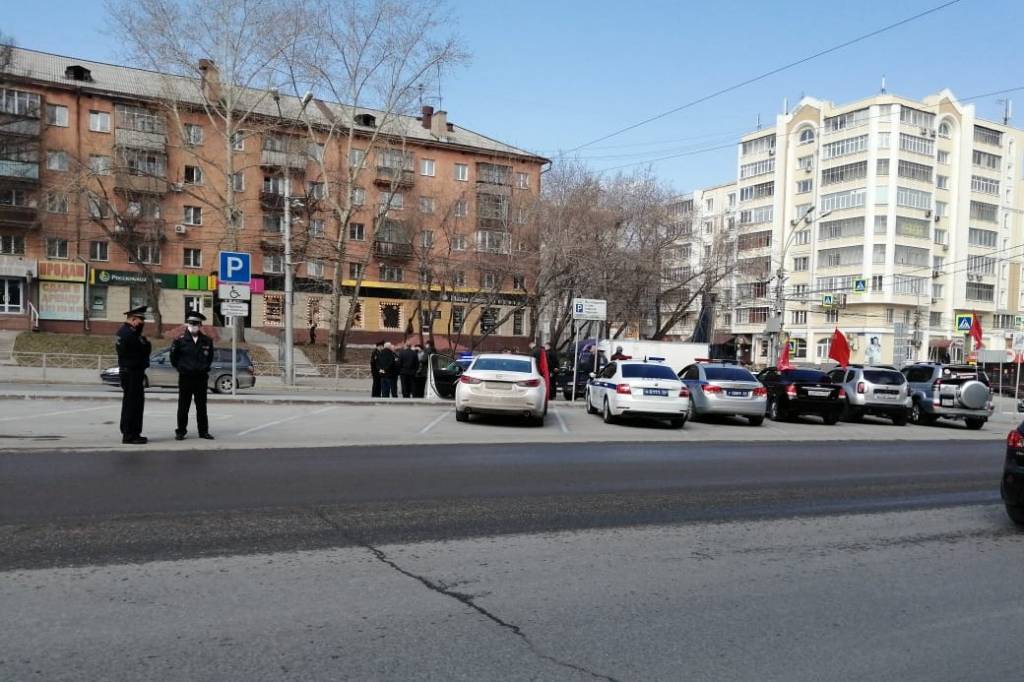 Колонна отправилась дальше, но это длилось недолго. Второй раз участников праздничного автопробега остановили на площади Калинина.