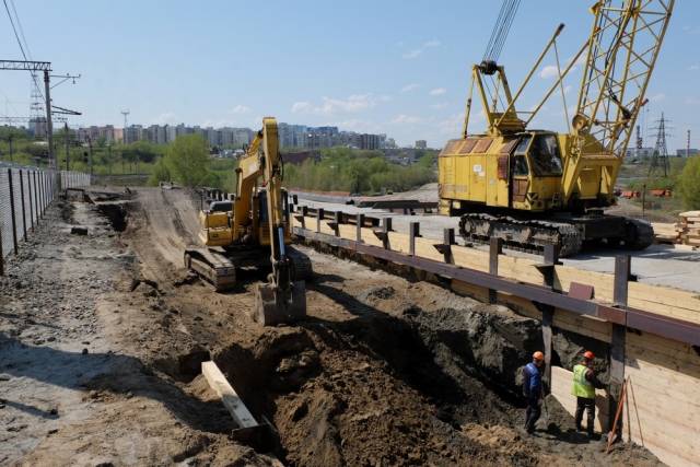 Автомобили в будущем будут по тоннелю проезжать под железнодорожной насыпью на левом берегу Оби. Подрядчики строительства четвертого моста возводят защитные сооружения, чтобы их работы не помешали и не повредили движению поездов по Транссибирской магистрали.