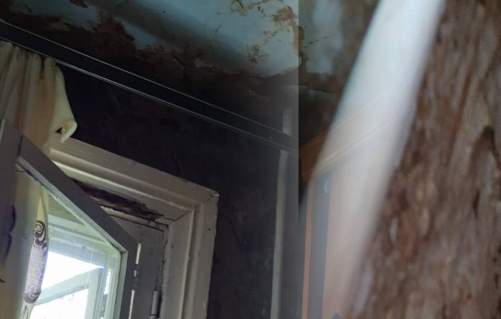 —Дожди лили, и у меня три ведра стояло, а на полу тряпки лежали. Вообще всё заливало. Дом — гнилой, держится на честном слове. Мы хотим, чтобы они нам хотя бы заплатки поставили и закрыли дыры, чтобы вода не текла, — рассказывает Валентина Ашомок. — Вода у нас течёт со второго и до первого этажа. В ЖЭУ нам отвечают, что у них денег нет. Мы предлагали уже сами купить материал.