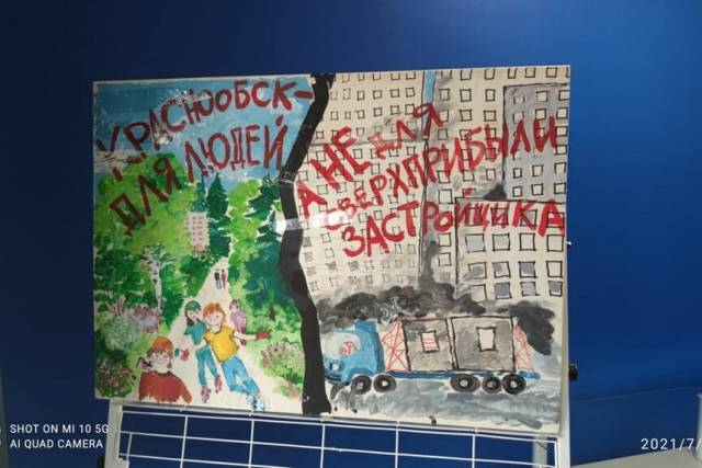 Приглашенные эксперты предложили собравшимся разделиться на группы и подготовить свои выступления по разным вопросам. Жители озвучили многое, но суть сводилась к следующему: они против размещения производства стройматериалов на территории Краснообска и не доверяют застройщику «Брусника», который судится с жителями из-за нелестных публикаций в свой адрес, а также до сих пор не предоставляет общественности обновленный проект застройки третьего микрорайона. Они даже провели своеобразный пикет, принеся и разместив в зале рисунки с текстами против застройки в ее нынешнем виде.