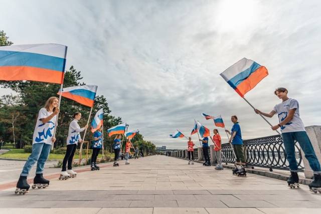 Позже на Михайловской набережной прошла финальная часть акции. Молодогвардейцы, одетые в белые, синие и красные футболки, устроили заезд на роликах вдоль набережной Оби. В руках у молодежи был, естественно, российский триколор.