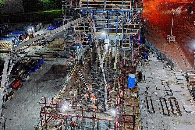 Перед тем, как приступить к формированию нижней перемычки, рабочие предварительно смонтировали 200 тонн конструкций опалубки. Как заявляют в компании, на текущий момент армирование выполнено почти наполовину, уложено 168 из 605 кубометров бетона повышенной прочности. Производят его смесительные заводы, расположенные прямо на стройплощадке.