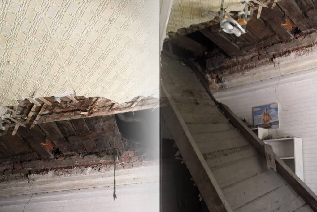 — Дочь взяла в руки телефон и практически сняла весь процесс обрушения. Мы позвонили в 112, они обзвонили все службы, потом пришла инженер из ЖЭУ. Было понятно, что там всё рухнуло вместе с натяжным потолком. После этого составлено заключение об обрушении потолочных перекрытий, — рассказывает Елена Кожевникова. — Там было видно, что все балки сгнили, и теперь у нас прямо дыра со второго этажа на чердак. Приехала полиция, и меня прямо заставили написать заявление, потому что я была в шоке.