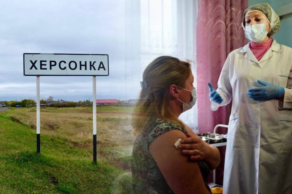 Уже в первый день, когда начали делать прививки от коронавируса, в местный ФАП явились 30 человек из 50 проживающих здесь взрослых людей. Пришла и самая старшая «херсонка» — 91-летняя бабушка.
