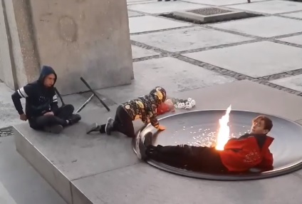 Напомним, на днях в социальных сетях появились фото и видеоматериалы о том, как трое мальчишек вызывающе ведут себя на Монументе Славы. Один из них развалился прямо в чаше Вечного огня, второй курил рядом со священным местом, а третий бросал в Вечный огонь мусор.