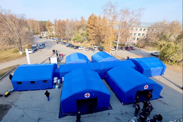 – Многофункциональный мобильный комплекс позволит нам в любой ситуации, при любом стечении обстоятельств, в любых условиях оказывать медицинскую помощь населению. Вне зависимости от того, будет это какое-то чрезвычайное происшествие с пострадавшими, техногенная катастрофа, или потребуется усилить какое-то действующее медицинское учреждение. Сегодня здесь развернуто четыре палатки, приемное отделение. Мы можем развернуть в два раза больше или в два раза меньше модулей, в зависимости от задач, которые будут стоять перед нами. Губернатор поддержал нашу инициативу, и мы теперь имеем на территории этот современный универсальный комплекс, – сказал Константин Хальзов.