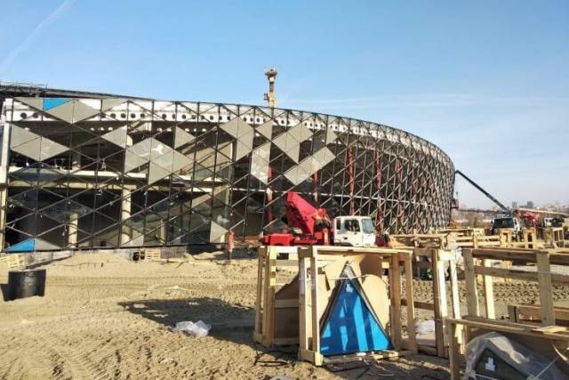 Ранее областные власти сообщали, что на строительстве многофункциональной ледовой арены увеличилось количество рабочих, при этом началась установка мачт наружного освещения.