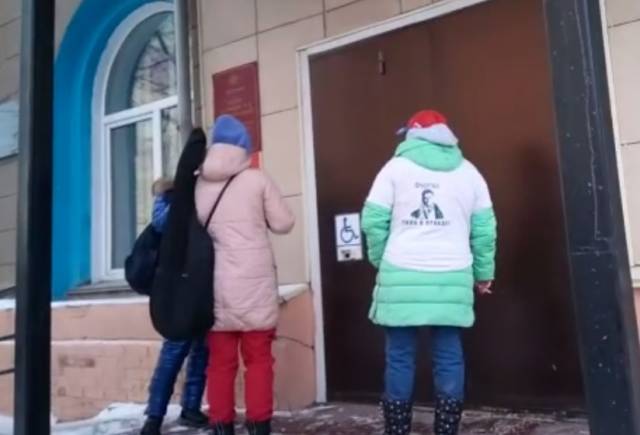 Активисты, прибывшие к отделу полиции, не смогли попасть внутрь: двери, по их словам, закрыты, жалюзи на окнах блокируют видимость.