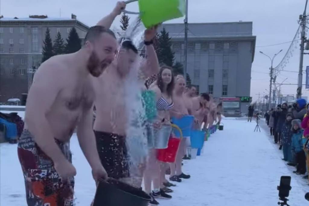 В воскресный день, в 11:20, около 30 новосибирцев собрались на центральной площади города, чтобы закалить здоровье путем обливания ледяной водой. Таких людей называют моржами. Уточняется, что подобная акция проходит в Новосибирске уже в четвертый раз.