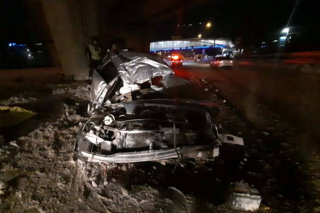 Неожиданно иномарка потеряла управление, или водитель по каким-то причинам с этим управлением не справился, и автомобиль на приличной скорости врезался в бетонную опору моста. Передняя часть машины превратилась в груду искореженного железа, и поездка для троих новосибирцев закончилась трагически.