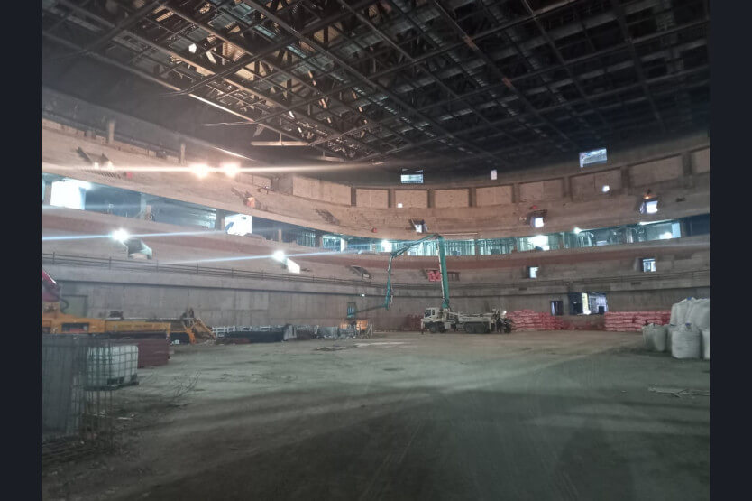 Работы по строительству ледового дворца спорта (ЛДС) возобновили 3 января после небольшого перерыва.