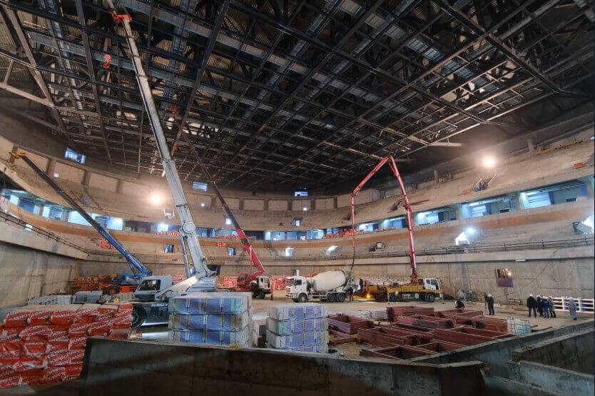 Как доложил главе региона заместитель генерального директора компании ООО «СДС-Строй» Алексей Кокорников, работы на объекте были возобновлены 3 января. На малой тренировочной арене, куда тепло подали в конце прошлого года, уже достигнуты положительные температуры и рабочие приступили к комплексу работ по устройству полов. Скоро начнется и отделка помещения.