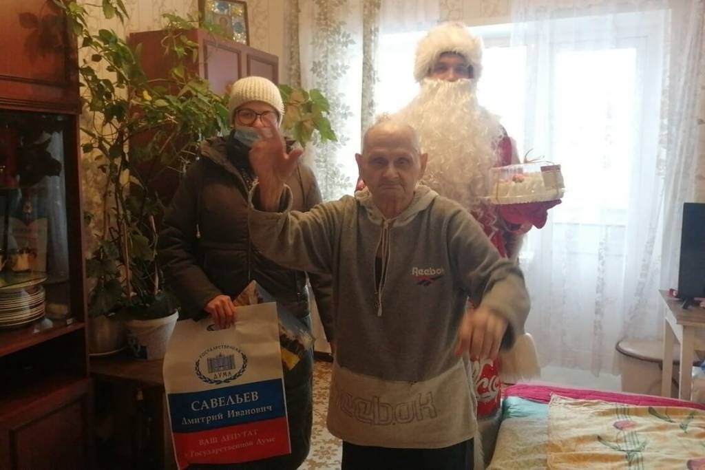 – Мне позвонили его дочь и сын, я с ними все время на связи была, я у них уже как член семьи была. Я пообещала, что мы обязательно придем к нему и будем уговаривать, чтобы он не падал духом и еще пожил. Мы договорились, что когда у Николая Сергеевича будет дежурить его сын, мы придем 30 декабря. Я перед Новым годом была в ресурсном центре нашего района и мне там порекомендовали обратиться к Татьяне Сазоновой, помощнику депутата. Я спросила, можно ли фронтовику подарок и Деда Мороза. Я сама вакцинирована, недавно я делала ПЦР-тест, он был отрицательным. Я маску ненадолго сняла, чтобы сфотографироваться с Николаем Сергеевичем, — вспоминает Чуева.