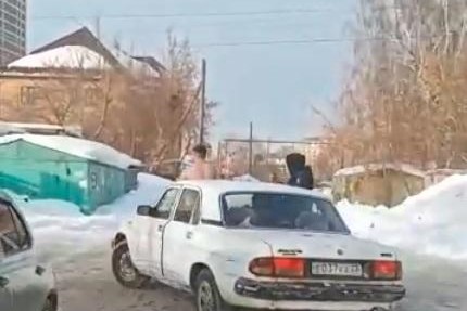 Голый мужчина прокатился на капоте «Волги» в Новосибирске