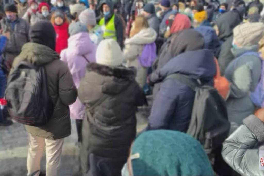 Судя по видеозаписи, в несанкционированной акции протеста приняли участие несколько десятков человек, выступающих против военной операции в Украине. Тимур Ханов заявил, что двоих митингующих задержали.