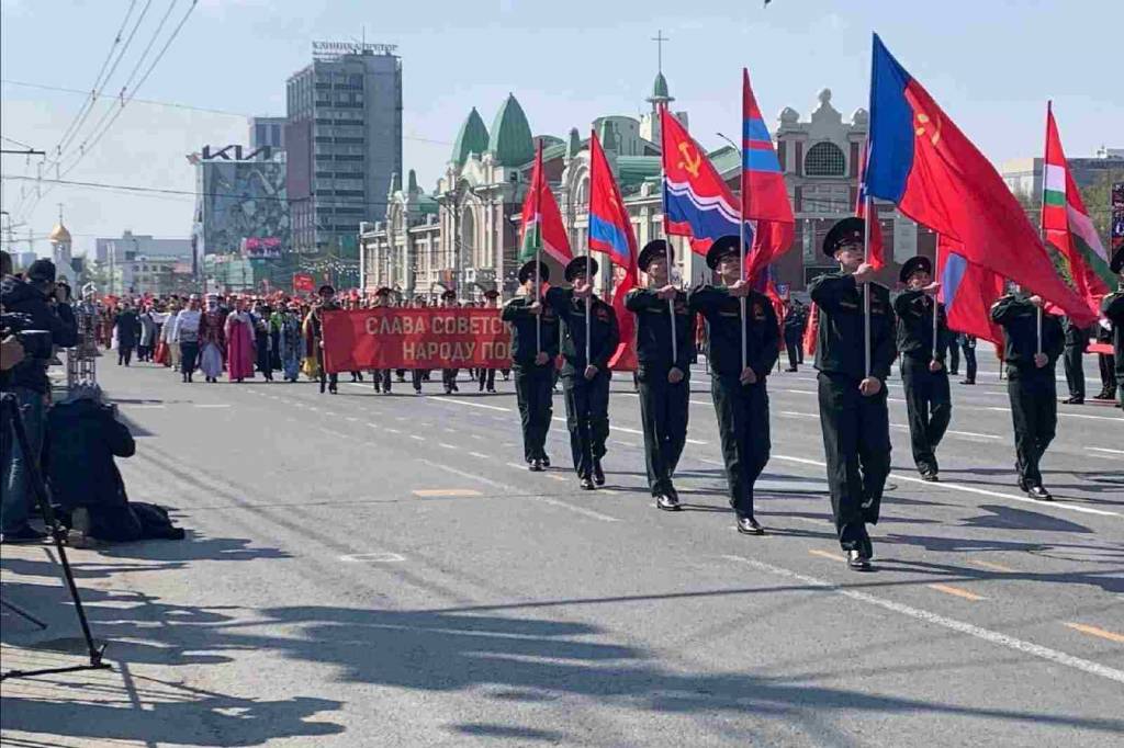 Уточним, что в общей сложности 9 мая по площади Ленина в Новосибирске пронесли флаги 15 республик Советского Союза: РСФСР, Украинской ССР, Белорусской ССР, Узбекской ССР, Казахской ССР, Грузинской ССР, Азербайджанской ССР, Литовской ССР, Молдавской ССР, Латвийской ССР, Киргизской ССР, Таджикской ССР, Армянской ССР, Туркменской ССР, Эстонской ССР.