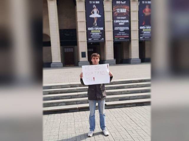 Тимофея Андриянова правоохранители задержали также 1 мая, но у здания Новосибирского театра оперы и балета (НОВАТ), он держал плакат с текстом «НЕТ ВОЙНЕ! МИР, ТРУД, МАЙ!».