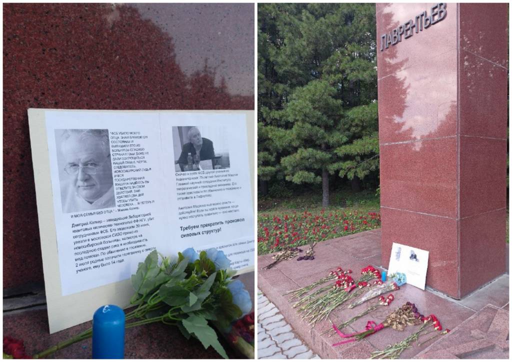 Уже 4 июля мемориал в память о погибшем физике возник вновь, но уже в другом месте, у памятника академику Лаврентьеву.