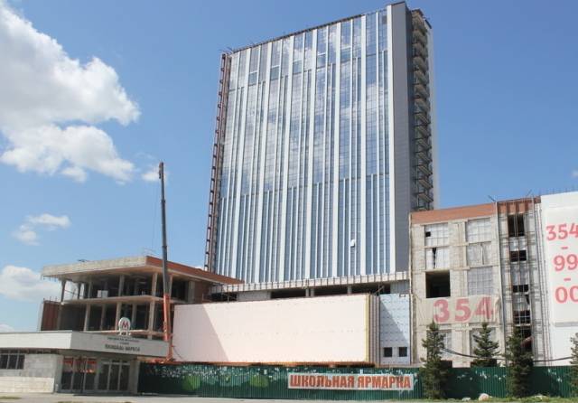 Объект начали возводить более полувека назад на площади Маркса. Планировалось, что здесь будет концертный зал и номера на 800 мест. Стройку законсервировали в 80-х годах. По одной версии, это произошло из-за неправильных расчетов, что могло привести к обрушению здания. По другой, гостиница могла быть небезопасной из-за несовершенства пожарной техники. В 90-е объект стал частным, однако инвестор нашелся только в 2018 году. Гостиницу должны сдать до конца 2022 года.