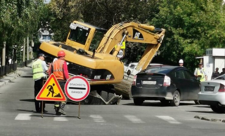 В Новосибирске экскаватор провалился в грунт на Комсомольском проспекте. Об этом «Прецеденту» рассказал горожанин Алексей, который стал свидетелем произошедшего.