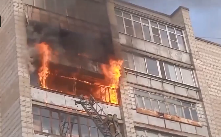 Горел балкон на 8 этаже, пламя распространялось на балкон этажом выше. Отмечается, что охваченной пламенем квартире людей не было.