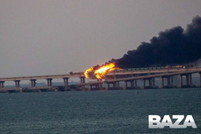 — Главным следственным управлением СК России возбуждено уголовное дело в связи с происшествием на Крымском мосту. По предварительной информации, сегодня утром на автомобильной части Крымского моста со стороны Таманского полуострова произошел подрыв грузового автомобиля, повлекший за собой возгорание семи топливных цистерн железнодорожного состава, следовавшего в направлении Крымского полуострова. В результате частично обрушились два автомобильных пролета, — говорится в сообщении в Telegram-канале надзорного ведомства.
