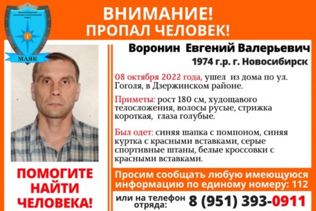 Всех тех, кому что-либо известно о местонахождении Евгения Воронина, волонтеры просят сообщить об этом по номерам телефонов: 8-951-393-0911 или 112.