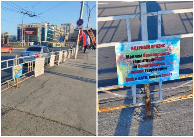 В Новосибирске 16 октября на площади Маркса появились плакаты с осуждением политики блока НАТО.