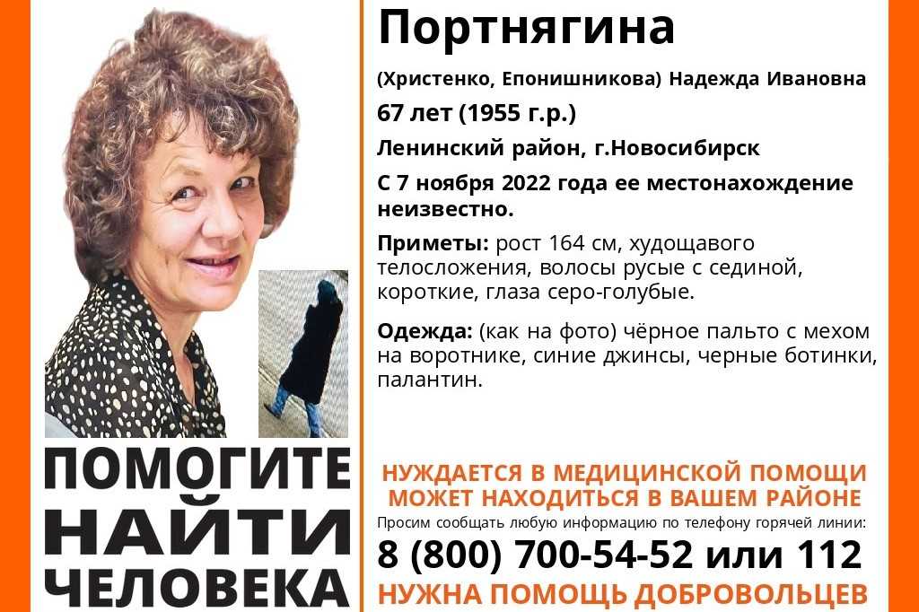 Всех тех, кому что-либо известно о местонахождении Надежды Портнягиной, волонтеры поискового отряда «ЛизаАлерт» просят сообщить об этом по номерам телефонов: 8 (800) 700-54-52 или 112.