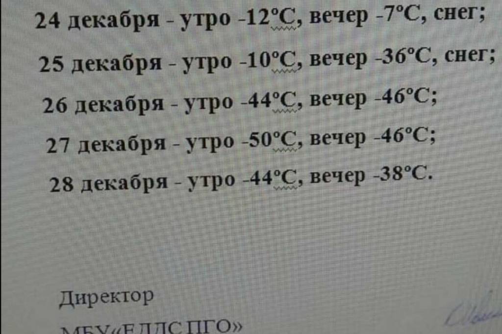 Тем не менее, на официальном сайте и прочих ресурсах ЕДДС ПГО тоже нет никаких подобных прогнозов. Судя по всему, данная бумага с обещанием морозов просто является чьей-то шуткой.