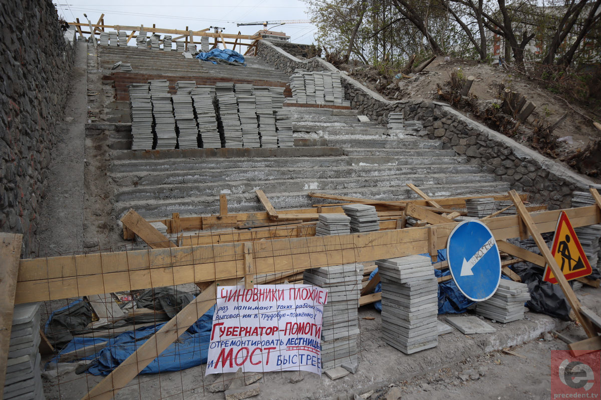 Автор послания эмоционально заявлял — «хватит это терпеть!» Спустя пару дней текст сменился, но его посыл остался прежним. Тем не менее, рабочие рядом с многострадальной лестницей замечены не были. А пешеходы продолжили недоумевать, почему банальный ремонт никак не могут завершить с ноября прошлого года. К решению наболевшего вопроса даже подключилась прокуратура.