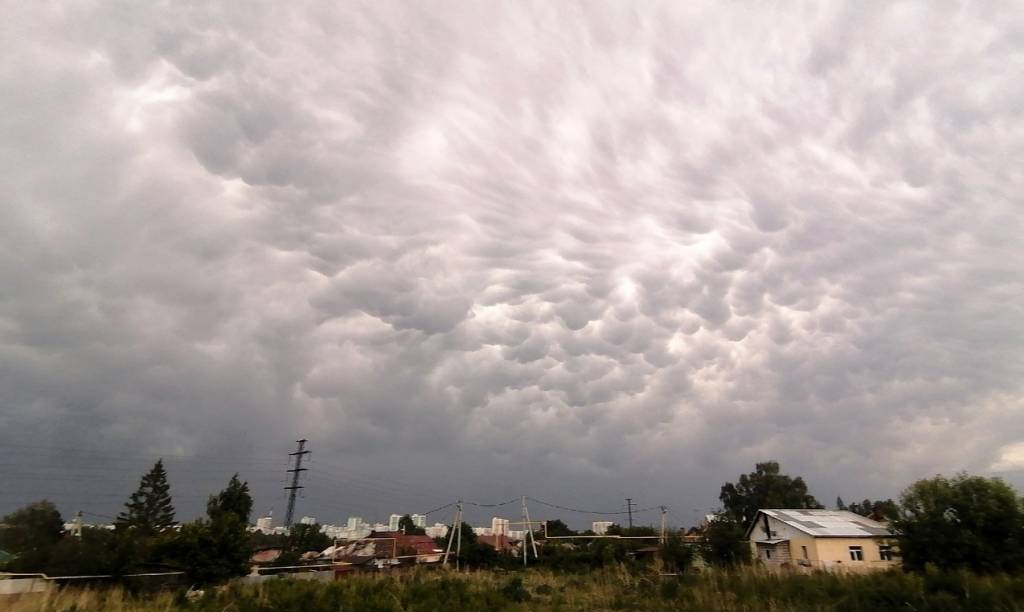 Также пользователи соцсетей поделились фото необычных облаков, которые были в небе перед сильным дождем и выпадением града.