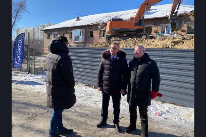 Министр строительства региона Дмитрий Богомолов совместно с представителями мэрии города и застройщика – ГК «Поляков» – посетили площадку по улице Игарская, на которой реализуется один из пилотных в Новосибирской области проектов КРТ, и дал старт сносу двух расселенных в рамках данного проекта аварийных домов.