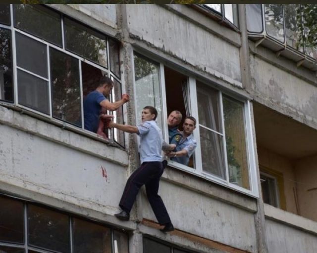Житель Саранска хотел выбросить из окна 5-месячного ребенка, но участковый полицейский залез в квартиру через соседний балкон, скрутил дебошира и спас малыша.