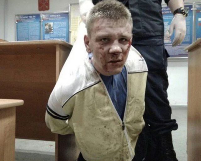 Потом у меня зазвонил телефон, и сотрудник полиции взял его у меня из кармана, передал его женщине, которая наблюдала за избиением. Она взяла трубку — звонила бабушка. Полицейская сообщила бабушке, что я в 80-м отделе полиции, и за мной приехала бабушка. После этого полицейские посадили меня на скамейку, чтоб я дожидался бабушку. Когда пришла бабушка и увидела меня всего в крови, то стала спрашивать, откуда это. Я стал ей рассказывать, что меня избили полицейские.