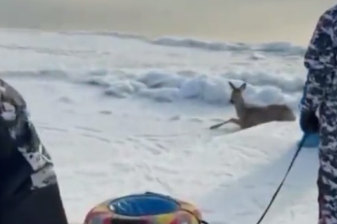 Под Новосибирском папа и сын спасли вмёрзшую в лед косулю